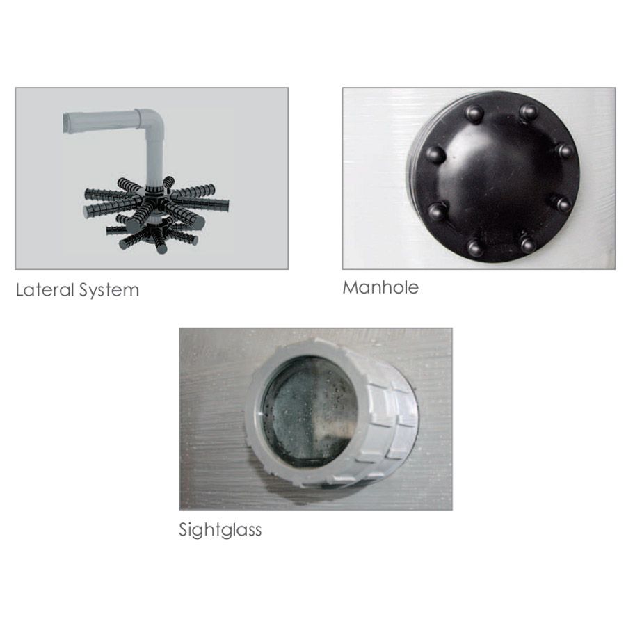 Фильтр глубокой загрузки Aquaviva SDB800 - это идеальное решение для механической очистки воды в частных, коммерческих бассейнах и СПА объемом до 80 000 л. Корпус фильтра выполнен из стекловолокна и резины, устойчивым к коррозии, влаге и УФ-излучению. Подходит для размещения в помещении и на улице. Фильтрующий элемент - песок фракции 0.5 - 0.8 мм. Для контроля уровня загрязнения, фильтр оборудован смотровым окном. На корпусе фильтра есть боковой люк диаметром 158 мм. Дополнительная высота фильтрующего слоя позволяет выполнить более качественную фильтрацию воды. Производительность: 20 м³/ч Тип подключения: боковое Диаметр подключения: 2" (63 мм)