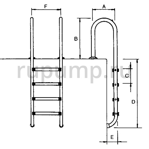Лестница Pool King узкий борт 5 ступеней, F205A Лестница Pool King узкий борт 5 ступеней, F205A
