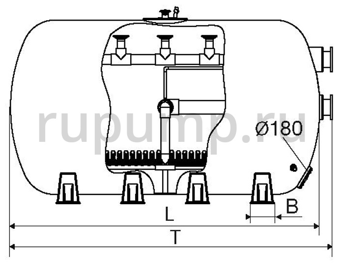 Данная модель рассчитана на крупные резервуары. Бесперебойная работа гарантирована при температуре воды до 50 градусов, что позволяет эксплуатировать систему очистки не только в бассейнах для занятий плаванием, но и в развлекательных комплексах водного типа. Особое внимание уделено качеству материала, из которого изготовлен бак. В качестве сырья используется полиэстер, армированный стекловолокном. Очищающим компонентом выступает песок фракцией 0,5-1 мм. В данном фильтре гравий не применяется.