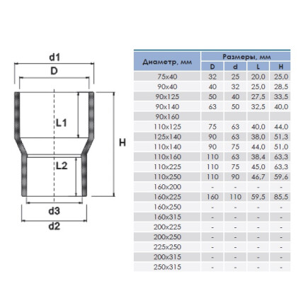 Втулка переходная ПВХ 125x90 мм Втулка переходная ПВХ 125x90 мм